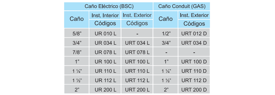 El conector cupla Daisa URT 110 D es fabricado en aleación de aluminio por inyección, que le otorga excelentes propiedades mecánicas y resistencia frente a la corrosión. Se utiliza para la unión de caños tipo conduit (DIN 2440 / Gas) de 1 1/4″. Es apto para instalaciones en exterior o intemperie, ya que posee un anillo de sello en forma de V, que se aloja sobre una canaleta mecanizada en el interior del accesorio, y facilita el ingreso del caño pero impide el ingreso de polvo y agua. Utilizado en conjunto con cajas y accesorios Daisa aptos para intemperie o exterior se obtiene un grado de protección IP54. Se provee con tornillos fabricados en acero al carbono con cobertura de galvanizado Dacromet, especialmente diseñado para clavarse en la cañería impidiendo que esta se desprenda. Utilizado en conjunto con caños tipo conduit (DIN 2440 / Gas) la continuidad eléctrica del sistema queda garantizada porque mas de un tercio de la superficie del accesorio queda en contacto con la superficie del caño. Están certificadas bajo norma IEC 61386 / IRAM 62386.