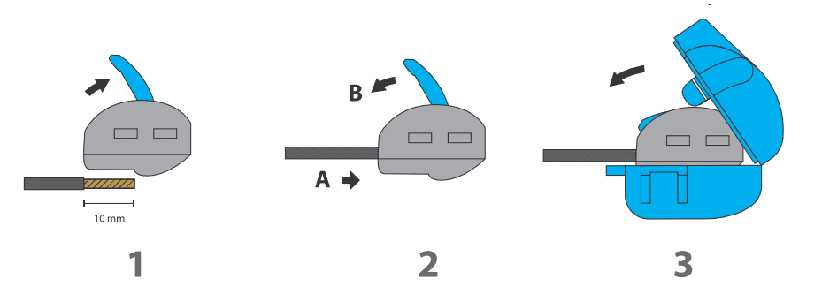 Las cajas de empalme Shark están listas para usar, ya que no es necesario realizar ninguna preparación del gel aislante, que está incorporado en las paredes de la caja. Solo será necesario realizar el empalme en línea o derivación según el modelo seleccionado (Utilizando el conector incluído en el kit, si corresponde). Luego, posicionar el empalme sobre el gel en una de las paredes de la caja, haciendo presión con el cable sobre los extremos troquelados del empalme, y finalmente cerrar la caja.