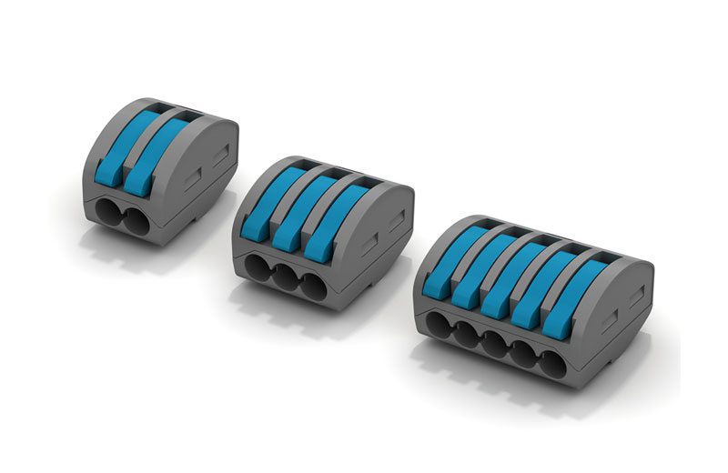 Los conectores rápidos SpringBox permiten realizar conexiones de baja tensión hasta 600 V y 32 A, en cables de 0,2 mm2 a 4 mm2. Su aplicación es muy sencilla, ahorrando considerablemente tiempo de instalación, y brinda una terminación prolija y profesional, facilitando tareas de mantenimiento. Cuenta con punto de prueba de tensión incorporado, y la tecnología de resortes individuales para cada palanca permite combinar cables de distinta sección asegurando la sujeción en forma independiente.